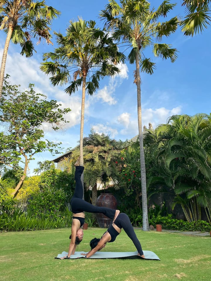 Cette séance privée se déroule dans votre villa et débute par une brève consultation afin de comprendre vos besoins et vos préférences. Vous pouvez choisir le style de pratique, par exemple le vinyasa, le hatha ou le yoga pour débutants. La séance, qui comprend des tapis et des accessoires de yoga, propose des mouvements doux et une respiration consciente pour favoriser la détente et l’équilibre. Le service couvre Kuta Utara ; d'autres zones sont disponibles sur demande moyennant des frais supplémentaires.