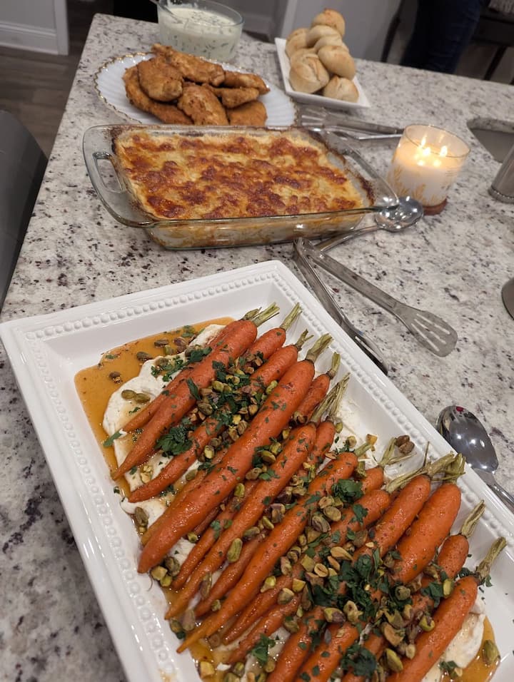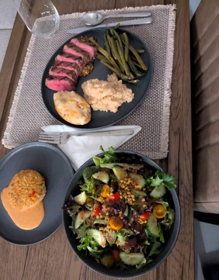 Préparé par le chef sur place. Plusieurs services comprenant un apéritif ou une salade, une entrée + 2 accompagnements et un dessert. Le nettoyage n'est pas inclus et des plats de service sur place seront utilisés.