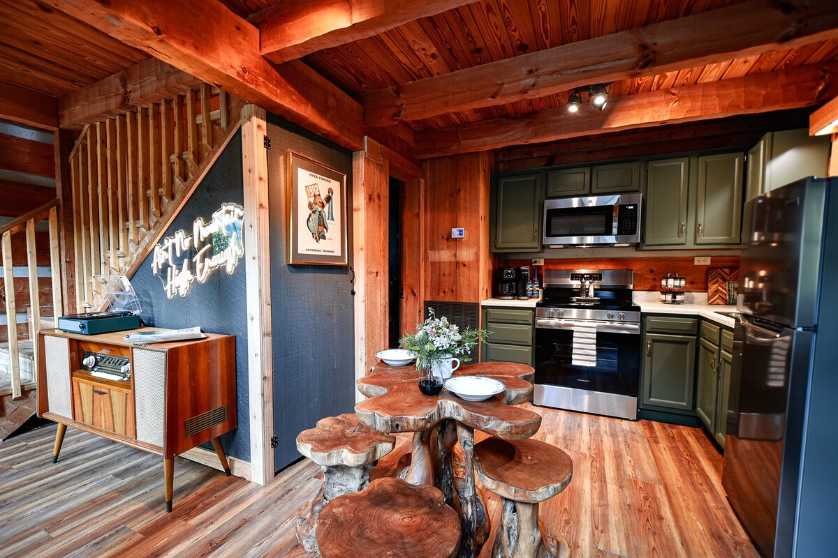 Welcome to 🦌 Scandi House 🦌 Unwind in the beautiful Smoky Mountains while enjoying the modern design, privacy, and the amenities of this Scandinavian inspired cabin. This cabin was newly built in 2024 and has been updated in December 2025. We completed a deck extension with outdoor theater, bocce/bowling, firepits, seating, and games. Inside we upgraded the design, added a 6 person dining table, new furniture, bunk game area, and main bedroom king bed, second coffee bar, and reading nook.