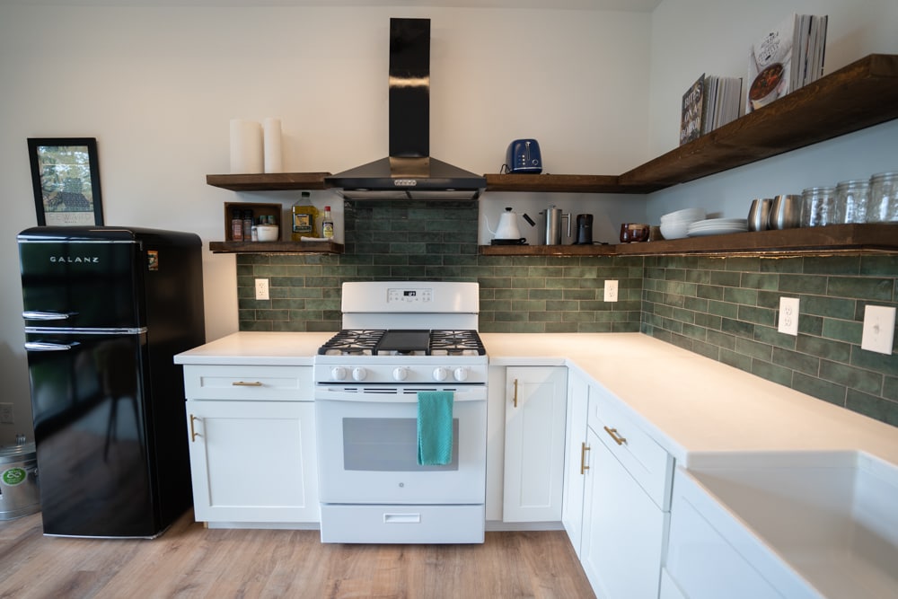 La cabane Oceanfront Inn est un coin confortable qui contient un lit queen dans la pièce principale, et une chambre séparée avec un lit jumeau. Profitez d'un barbecue sur la terrasse couverte privée, ou cuisinez à l'intérieur avec la cuisine/salle à manger complète. La salle de bain complète comprend une douche debout. Un bain à remous partagé (en supplément) est accessible dans la maison principale. Cette cabane est idéale pour les couples, les aventuriers en solo, les voyageurs d'affaires et les petites familles.