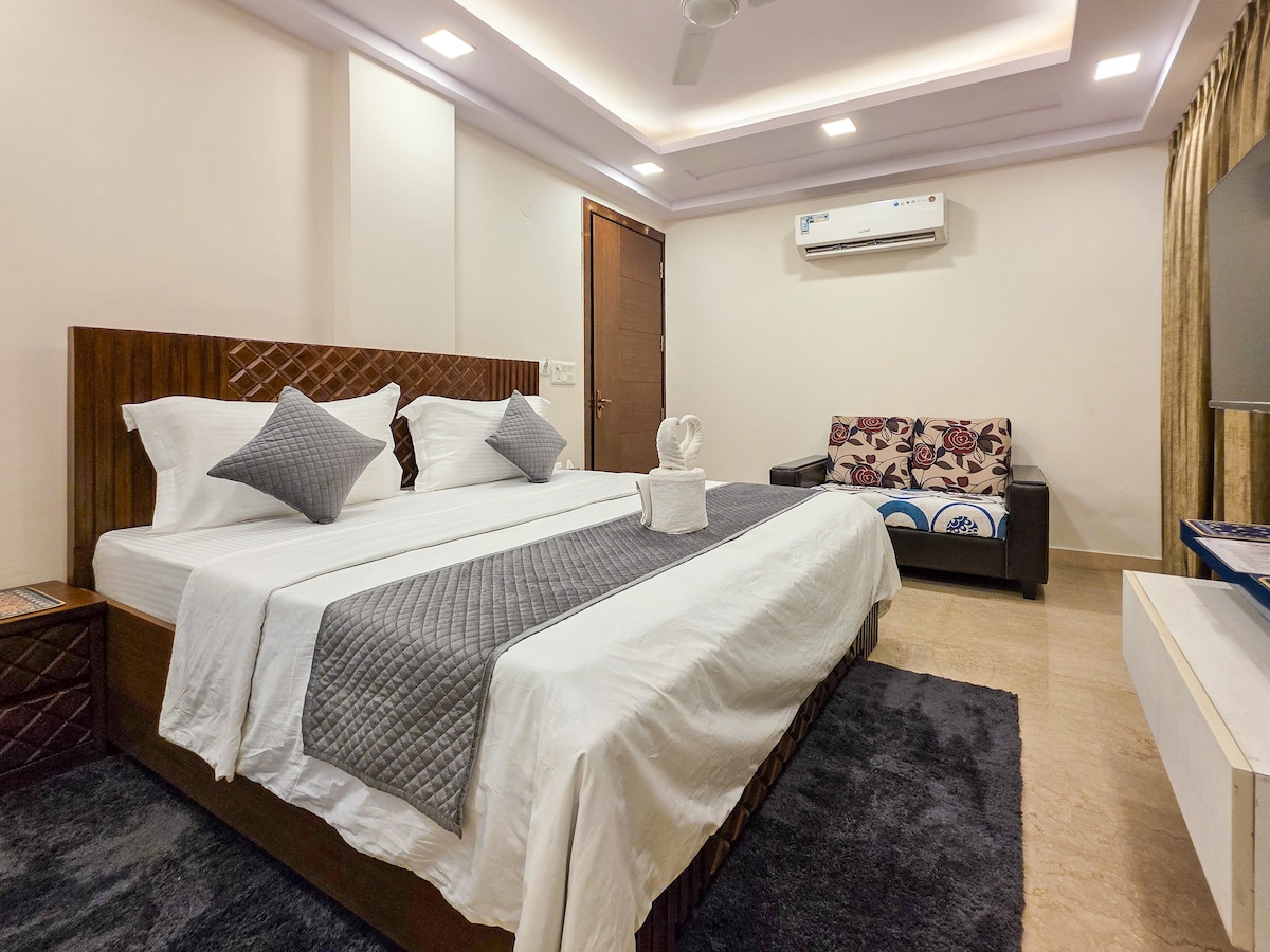 Détendez-vous avec toute la famille et les amis dans ce logement paisible. C'est un appartement indépendant entièrement meublé de 1 BHK bien conçu (370 m ²). Arrivée autonome avec casier. Appartement prêt à l'emploi (avec 3 ascenseurs) avec tous les meilleurs équipements pour nos voyageurs haut de gamme. Notre studio est exceptionnel dans la société appelée DLF Capital Greens Moti Nagar. C'est un studio meublé bien conçu et confortable avec toutes les commodités ultra-modernes, à proximité du centre de Delhi