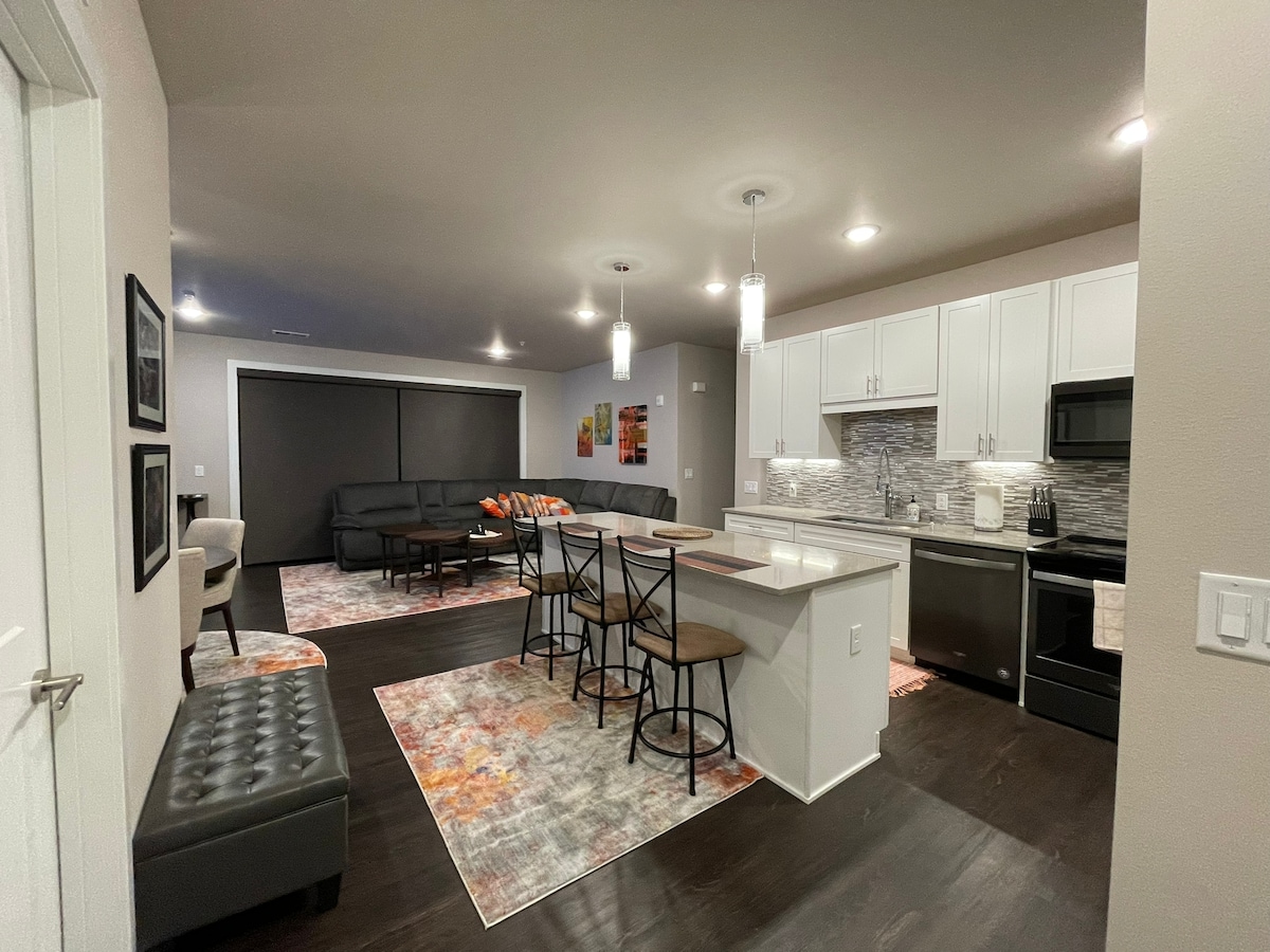 Appartement de luxe de nouvelle construction à Elkhart Lake. Situé dans le complexe Wolf Luxury Motor Courts. Spacieux condo de 2 chambres avec 2 salles de bain complètes et balcon. Cuisine américaine et salon avec grand espace îlot/salle à manger. Situé à 20 minutes du terrain de golf Whistling Straits. Profitez du légendaire lac Elkhart, qui abrite des restaurants primés, un centre-ville historique et de magnifiques vues sur le lac depuis les établissements nocturnes locaux. L'appartement est à 1/2 mile au nord de la piste de course Road America.