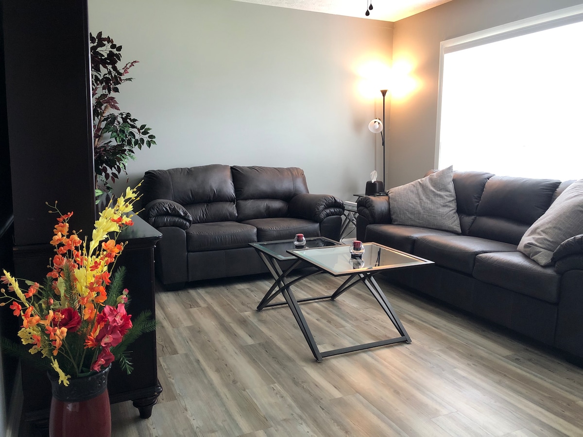 Suite parentale récemment rénovée. Nous venons de mettre à niveau le lit en lit Queen Size. Escapade très privée, garage détaché. Un coin salon confortable, télévision par câble 60" avec HBO, SHOWTIME et STARZ. Bar avec réfrigérateur, machine à glaçons, cafetière, micro-ondes, plaque chauffante, vaisselle et quelques ustensiles de cuisine. La salle de bain privée dispose d'une douche et d'un placard. Cet appartement privé est au-dessus du garage. À l'extérieur, il y a une cour clôturée pour votre ami à fourrure, un foyer extérieur et un coin salon. Proche de l'autoroute et à quelques minutes du centre-ville.