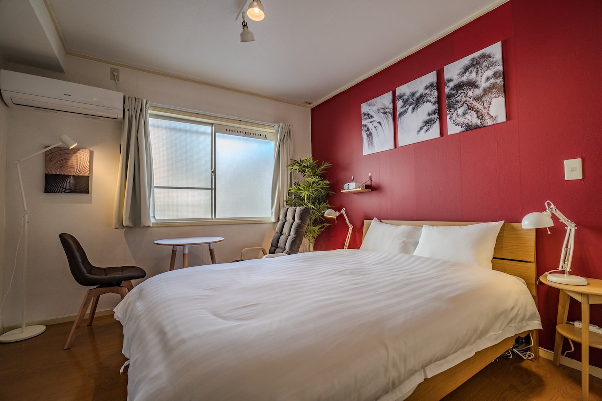 [Nouvellement ouvert] Chambre de style Japandi près de la gare JR Kaminakazato, parfaite pour les visites touristiques ou les affaires. Un lit double pour 2 personnes maximum. Quartier résidentiel calme et verdoyant, mais proche des principaux sites de Tokyo. Komagome (ligne Yamanote) et Oji (ligne Namboku) sont accessibles à pied. Ueno et Ikebukuro sont à seulement 10-15 minutes en train. À proximité se trouvent le parc Asukayama et les jardins Kyu-Furukawa pour des vues saisonnières. La chambre comprend une douche, une cuisine et un lave-linge/sèche-linge pour un séjour confortable.