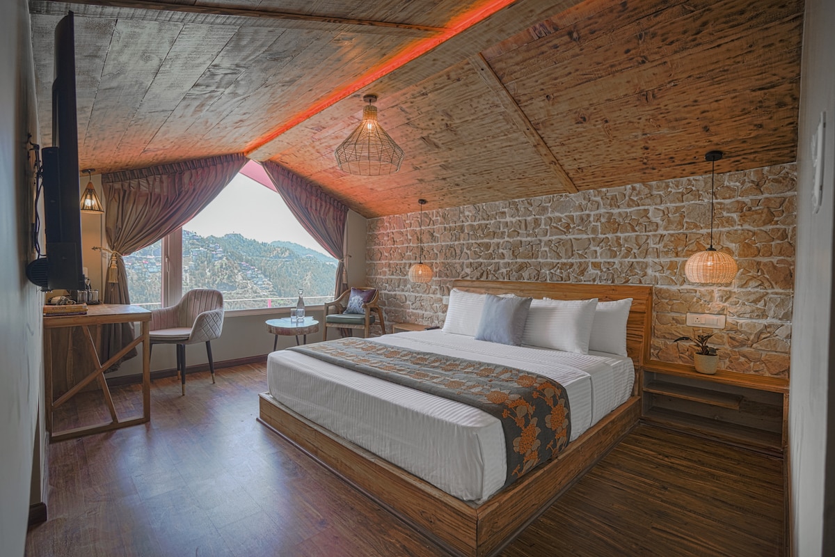 Saanjh ~ Serene Attic Abode, nichée à Mashobra, Shimla, offre une retraite duplex luxueuse. Cette charmante maison d'hôtes propose 3 chambres bien conçues et combine le charme intemporel de l'architecture vintage avec des équipements modernes. Entouré de vues imprenables sur de magnifiques couchers de soleil sur la vallée et la jungle, cet endroit offre une atmosphère paisible et charmante. Située à seulement 40 minutes (30 km) en voiture de l'aéroport de Shimla et à 20 minutes (8 km) de Mall Road, cette maison d'hôtes offre une accessibilité pratique.
