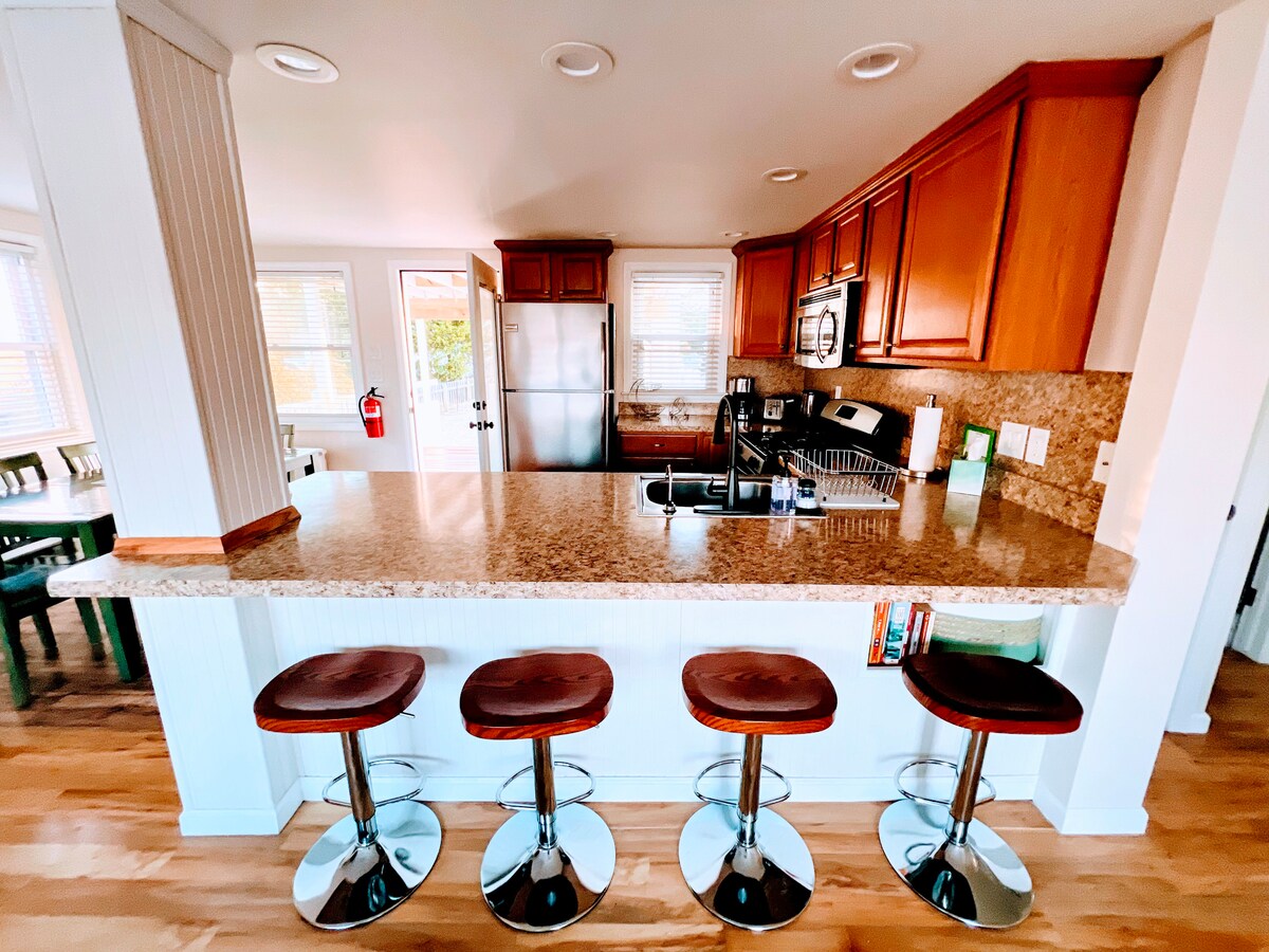 Welcome to our waterfront beach house! Just 2 mins to the open bay and 5 miles to LBI. Set in a quiet, family-friendly area, our home is known for its views, cleanliness, and comfort. Brand-new AC units in EACH bedroom! Central AC system throughout. Walk paths at the end of the block, 2 miles to the bay beach, and 1 mile to a plaza with bagels, pizza, a market, and holistic urgent care. Fire pit and a paddle boat included. Bring your boat, jetski, or kayak! Event-friendly—ask us.