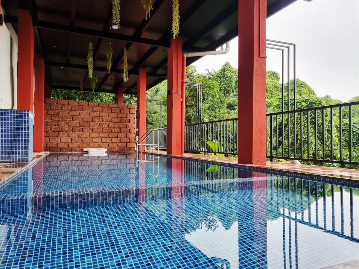 Entouré par les belles collines verdoyantes, accompagné par le ruisseau frais des chaînes Sahyadri qui court sur son bord offre un sanctuaire bienheureux loin du chaos de la vie urbaine. Dans notre endroit calme, vous êtes embrassé par le bruissement des feuilles, l'oiseau mélodieux appelle. Les finitions uniques, chaudes et terreuses complètent les murs blanchis à la chaux pour créer une atmosphère calme. Tirez le meilleur parti du temps tropical, passez votre journée à flotter dans la piscine, marchant pieds nus sur la pelouse luxuriante et magnifiquement entretenue.