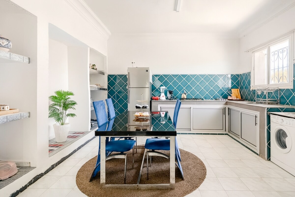 Cette villa bien équipée, située à 5 minutes en voiture de la plage et proche du centre-ville, est idéale pour vos vacances. - Lit double et 2 lits simples pour des nuits paisibles - Smart TV Samsung - Cuisine équipée - Salle de bain - Lave-linge - Wi-Fi Fibre optique - Pack d'accueil : bouteille d'eau, fruits et en-cas Note : Les couples marocains mariés doivent présenter un acte de mariage. Réservez dès maintenant et profitez d'un séjour inoubliable!