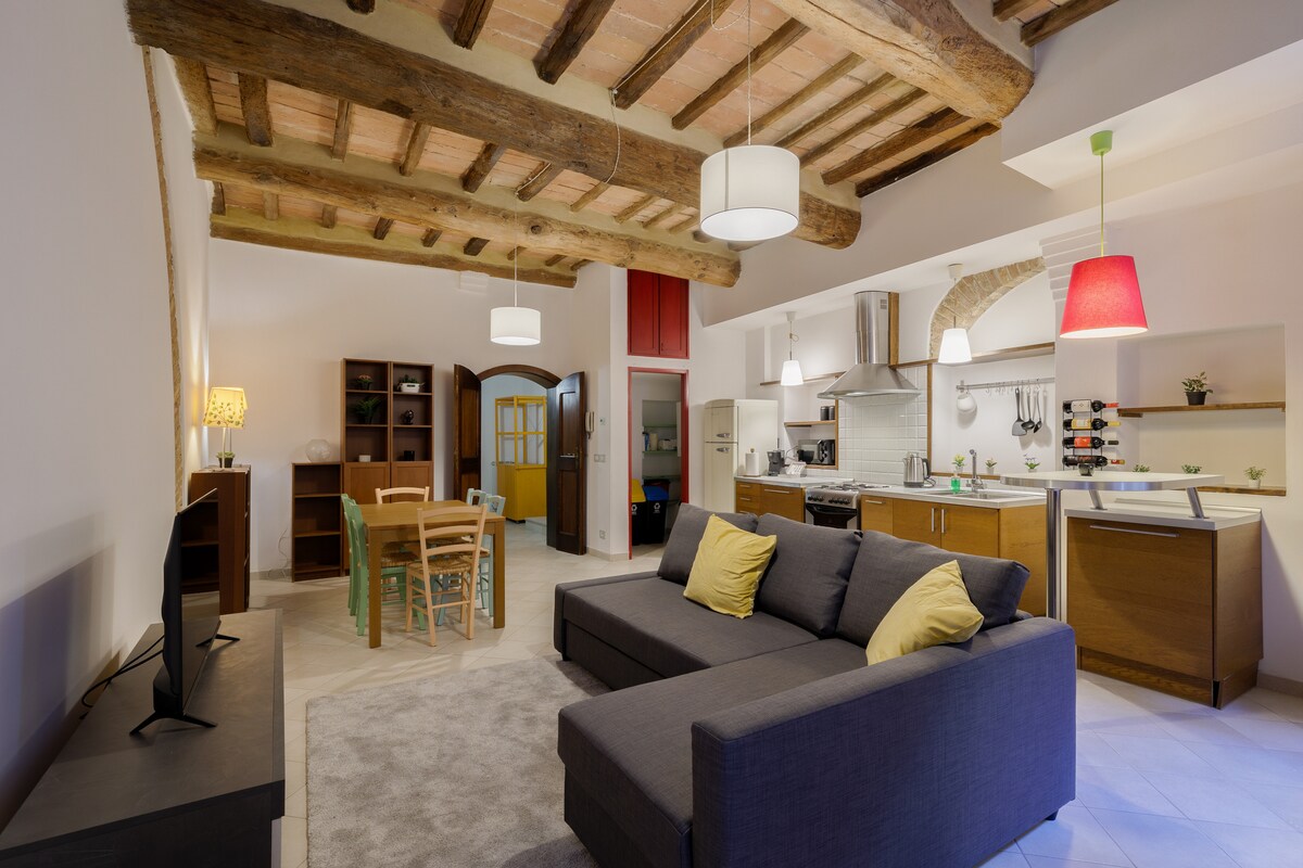 Appartement dans le centre historique de Sienne, à seulement 50 mètres de la Piazza del Campo. Le logement a été entièrement rénové en 2019. La restauration a été effectuée en essayant de garder ses principales caractéristiques intactes, mais en ajoutant tout l'équipement nécessaire au mode de vie d'aujourd'hui. L'appartement est un endroit idéal pour ceux qui veulent visiter et découvrir la ville ; en fait, tous les monuments et attractions du centre historique sont accessibles à pied en quelques minutes.