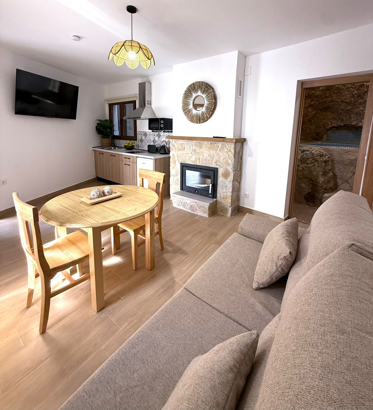 Entouré de montagnes, d'oliviers et pas grand-chose d'autre, vous pourrez vous détendre et profiter de la tranquillité. Randonnée pédestre, vélo, kayak, baignade, tout-terrain ou profiter de la vue depuis la piscine d'eau salée partagée (piscine fermée d'octobre à mai chaque année). Cette grotte privée offre les commodités de la vie moderne - une machine à café Nespresso, un lave-vaisselle, une télévision connectée, le wifi et un poêle à bois - tout en conservant le charme et le caractère d'une habitation troglodyte. Séjournez dans une grotte, vous ne le regretterez pas !