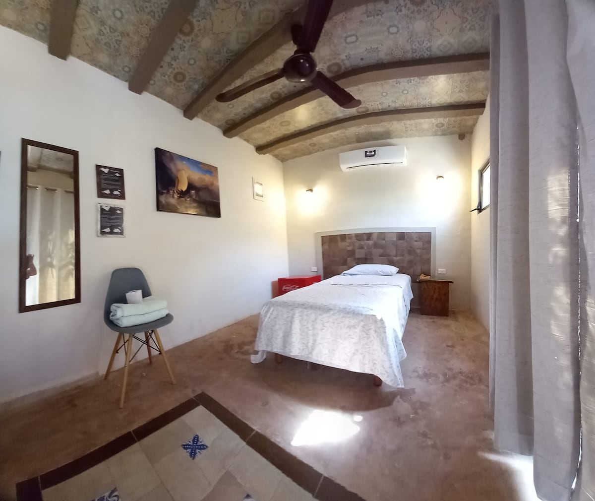 Bienvenue à Casa Liberata. Découvrez un joyau caché à Campeche, à quelques pas du quai et de la place des galeries. Cette maison combine le meilleur de l'architecture coloniale avec un design minimaliste et des détails uniques. Détendez-vous dans une pièce naturellement éclairée, avec de hauts plafonds, un sol en pâtes original et un mobilier chaleureux et fonctionnel. La cuisine est équipée pour l'essentiel, idéale pour des petits déjeuners au calme ou un verre au coucher du soleil.