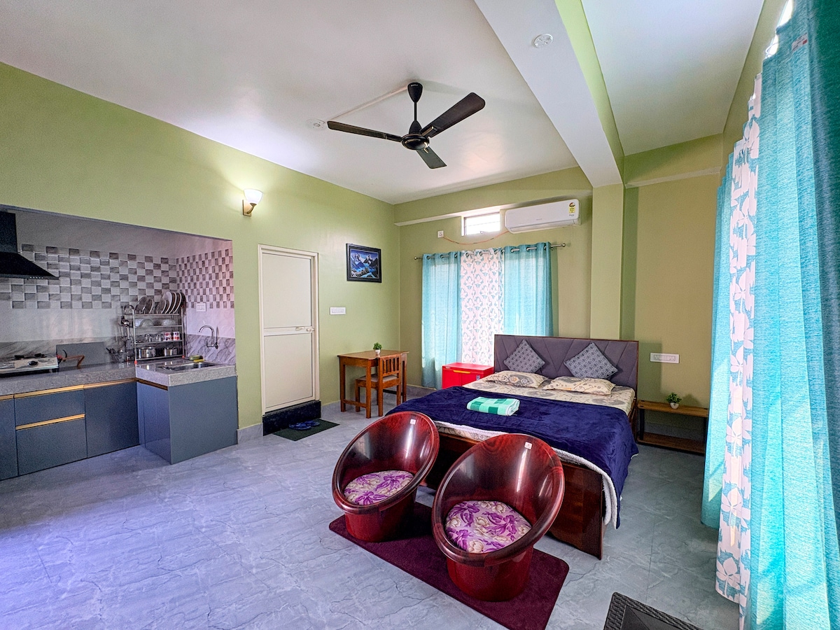 Welcome to a quiet and cozy, private studio apartment in Dagapur, Siliguri — ideal for couples, small families, and exam or medical stays 😊 Located on 2nd floor, the space feels more open and offers a lovely view from the balcony. Fully independent with no shared living areas, so once you’re inside, it’s completely yours. Bright, well-ventilated, and set in a quiet residential area, with AC, a functional kitchen, fast WiFi, and a dedicated workspace.