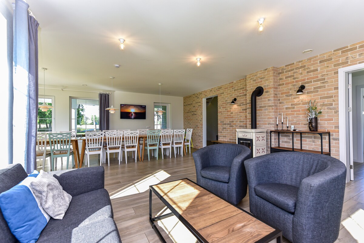 Un endroit charmant où séjourner : une toute nouvelle maison d'hôtes avec toutes les installations et un sauna à l'intérieur. Entouré d'une nature bien entretenue dans un endroit calme. C'est un joyau et peut être appelé un vrai hors des sentiers battus en Lituanie, de sorte que vous serez en mesure de découvrir la vie de petite ville et de passer beaucoup de temps à l'extérieur. Les hôtes sont des gens du coin très sympathiques et attentifs. Sachez que nous parlons très peu anglais, mais cela n'a jamais été un problème avec nos voyageurs étrangers, car l'utilisation d'applications de traduction est toujours utile.