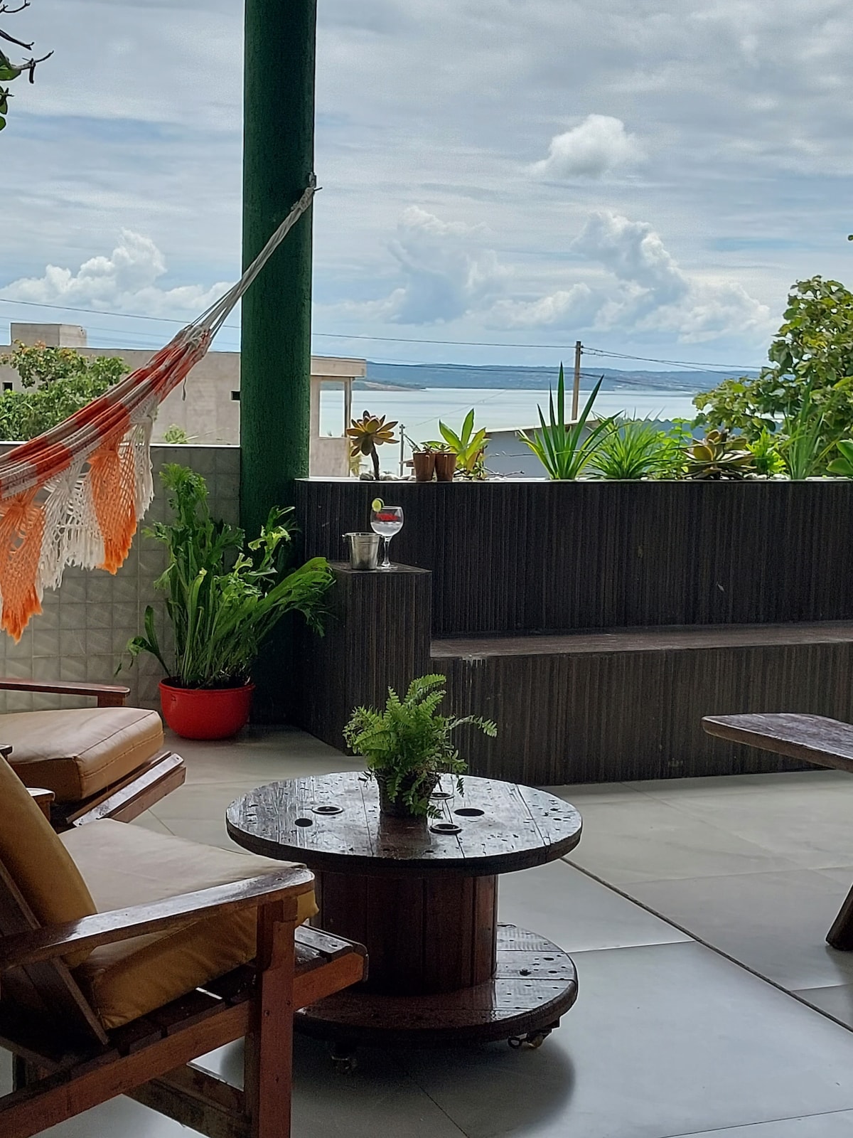 La propriété est une petite ferme de 2 500 m², avec piscine chauffée, mini terrain de volley/foot/beach tennis au milieu de la forêt indigène. Le relief a permis de profiter d'une vue exceptionnelle sur le lac. La végétation est en harmonie avec le paysage. Il est situé à 80 km de Brasilia (Taguatinga) et à 140 km de Goiânia, avec accès par la BR 060. Toutes les chambres disposent d'un grand balcon ou d'une terrasse. La propriété compte plusieurs arbres.