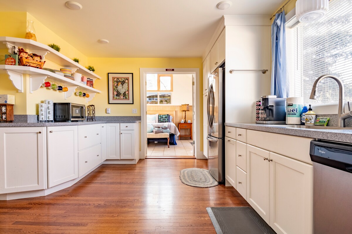 Une suite de 3 chambres et un patio privé clôturé avec foyer au propane et barbecue, entourée de trembles luxuriants, dans un espace plus sombre pour profiter des étoiles la nuit. L'emplacement principal de Ravens 'Off est à 4 pâtés de maisons à pied de la rue principale. La salle de bain dispose d'une double vasque, d'une grande douche, d'une immense baignoire (pas de jets). Salon avec réseau de vaisselle, kitchenette avec plaque de cuisson, micro-ondes, réfrigérateur, lave-linge/sèche-linge, cafetière et four de comptoir. Beaucoup de places de stationnement privées. Une chambre sans animaux de compagnie. Voir les espaces 9,10,11et 12 pour les séjours d'animaux de compagnie.
