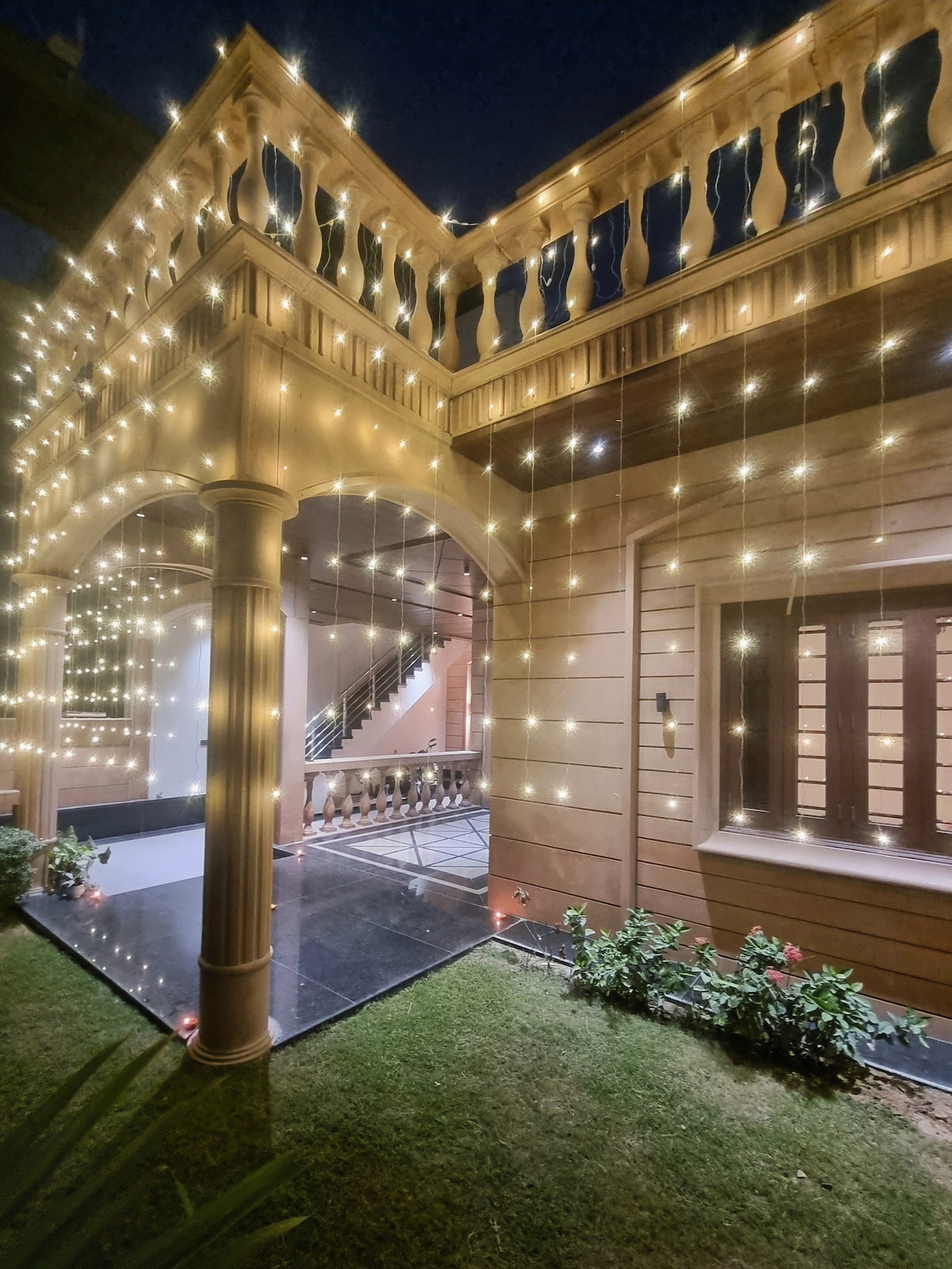 Découvrez The Royale Haveli By Madvik Retreat in Rajasthan ! Laissez-vous emporter par la magie du patrimoine et de la culture dorés de Jodhpur. Le haveli est un séjour de 3 chambres avec toutes les commodités et le confort modernes. Vous pouvez profiter du ciel ouvert près de la piscine ou vous détendre près de la zone du jardin à la voix des oiseaux dans la distance. Beaucoup d'oiseaux et de paons ont été repérés sur la terrasse et le jardin de ce haveli. Réservez votre séjour et gâtez-vous avec la délicieuse cuisine et l'hospitalité incroyable de notre personnel