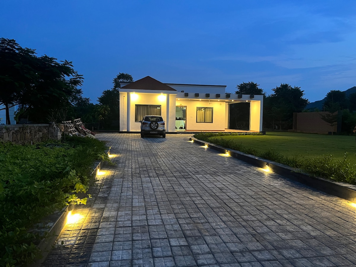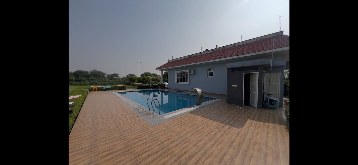 Nestled in the lap of the Aravali's, our peaceful, budget-friendly farmhouse is ideal for families, couples, friends, and pet parents looking for a relaxing nature escape in Alwar (Delhi NCR). With a private swimming pool, open garden spaces, and scenic mountain views, we offer a perfect balance of comfort, privacy, and simplicity. Enjoy slow mornings with chai, let kids & pets play freely in the garden, cool off in the pool during the day, and unwind under open skies—away from city noise.