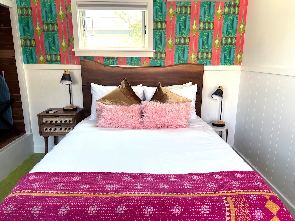 Le Roaming Gnome Guest Ranch est une interprétation moderne de la culture danoise historique de Solvang. Les chalets du milieu du siècle sont fraîchement rénovés et décorés dans des tons joyeux et lumineux, avec un kitsch amusant et un confort soigné. Situé à deux pâtés de maisons du célèbre moulin à vent de Solvang et de la rue principale de Copenhague, vous trouverez un accès facile aux magasins, à la dégustation de vins et à certains des meilleurs restaurants du comté de Santa Barbara. Le stationnement est fourni sur place, vous pourrez donc laisser votre voiture et vous rendre n'importe où en ville en quelques minutes.