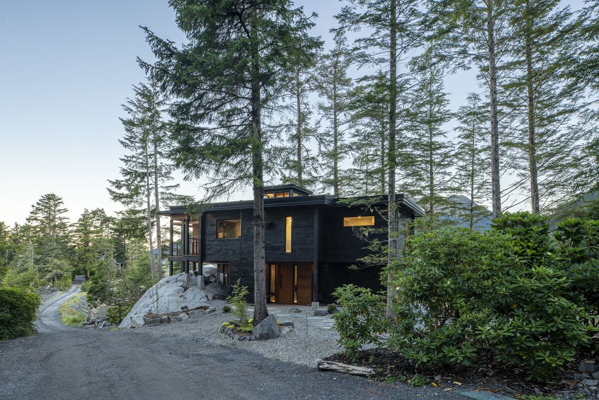 Inspiré à la fois par la vie à bord de bateaux en bois classiques dans le sud-est de l'Alaska et les voyages hivernaux en Asie du Sud-Est, votre hôte, un pêcheur local, a construit sur mesure cette maison moderne et confortable pour utiliser chaque pied carré à son plein potentiel sans sacrifier la beauté, le luxe ou le style. Construit à partir d'épinettes, de pruche et de cèdre récoltés dans des moulins locaux à petite échelle, ce logement se trouve à six minutes à pied de belles cascades et du vaste réseau de sentiers forestiers de Sitka. L'épicerie se trouve à deux minutes en voiture en bas de la colline.