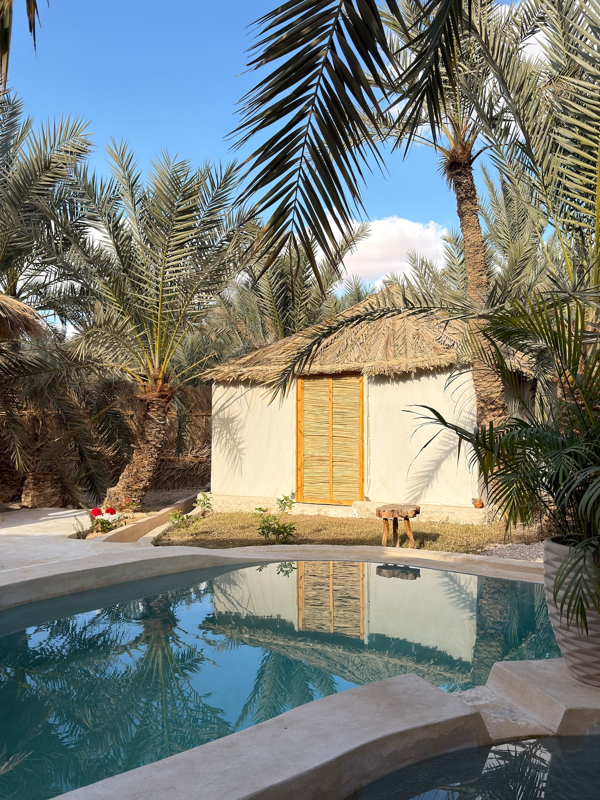 Évadez-vous à TATRABENT, une retraite sereine et respectueuse de l'environnement nichée au cœur de l'oasis de Siwa. Entouré de paysages désertiques à couper le souffle, de palmiers luxuriants et de lacs salés naturels, notre retraite offre une expérience Siwan durable et authentique. Construits avec des matériaux traditionnels, nos hébergements se mêlent harmonieusement à la nature, offrant un charme paisible et rustique. Détendez-vous dans nos gîtes en briques de boue artisanales, savourez la cuisine locale bio et plongez dans la beauté intemporelle de Siwa.
