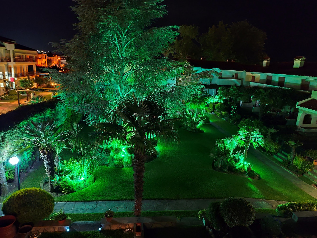 À 30 mètres de la plage (90 pieds), au domaine de Pliades à Siviri. Maison confortable et lumineuse avec une télévision connectée et une connexion Wi-Fi grand réfrigérateur Machine à laver micro onde cuisinière et four Climatisation incluse ! Convient pour 4 personnes maximum, familles, etc. Au premier étage d'un complexe. Jusqu'à la mer avec une bonne brise la nuit ! À 25 km de la plage de Sani et à seulement 10 km de Kallithea et à 15 km d'Afytos.
