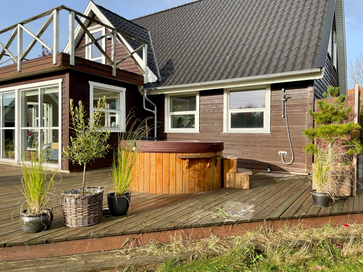 Trouvez le confort et la tranquillité en séjournant dans cette belle maison récemment rénovée. Bonnes conditions d'accès par la route 453/461. La nature est juste dans le jardin, car la maison a un terrain directement sur la rivière Gudenåen. Pour ceux d'entre vous qui aiment pêcher, faire de la randonnée, du vélo ou du canoë/kayak, mais qui veulent un vrai lit et une douche chaude après une journée active. Asseyez-vous éventuellement près du feu et montez votre tente près de la rivière. L'appartement est situé au 1er étage et a été rénové avec soin et élégance au printemps 2023. Linge de lit, serviettes, torchons, etc. inclus dans le prix.