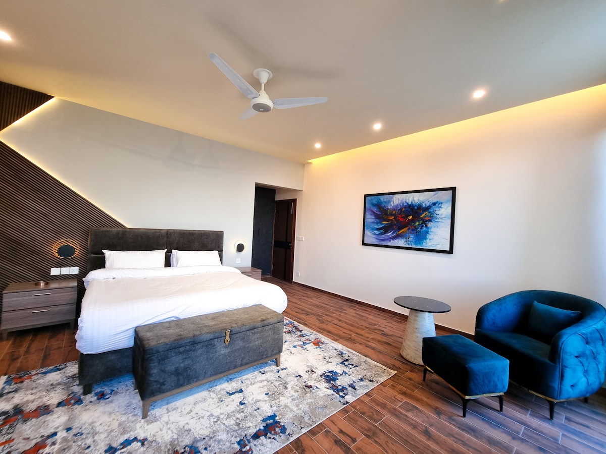 Wamiq Skardu est une villa avec vue sur la montagne près du lac Khosho, à seulement dix minutes de l'aéroport de Skardu. Entourée des paysages à couper le souffle de Skardu, la villa offre une escapade paisible dans la nature sans compromettre le confort. La propriété dispose de deux suites, chacune conçue pour offrir une expérience confortable et personnalisée. Les voyageurs peuvent profiter d'équipements modernes dans chaque suite, y compris une cuisine entièrement équipée, un salon TV confortable, une chambre avec goût et une salle de bain propre et élégante.
