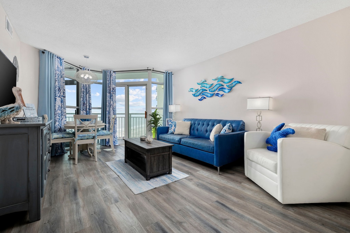 A bright, modern oceanfront retreat where everything feels simple and comfortable. Enjoy open views, a clean design, and an easygoing space made for slowing down by the sea. Top 5% rated in Myrtle Beach 🌴 Oceanfront Luxury — Seawatch Resort 1003 North Tower • 🌊 Floor-to-ceiling ocean views that make the beach feel front and center • 🛋 Bright, modern living space designed to feel open, simple, and comfortable • 🛏 Private bedroom with a comfortable king bed for restful nights • 🍳 Fully equ
