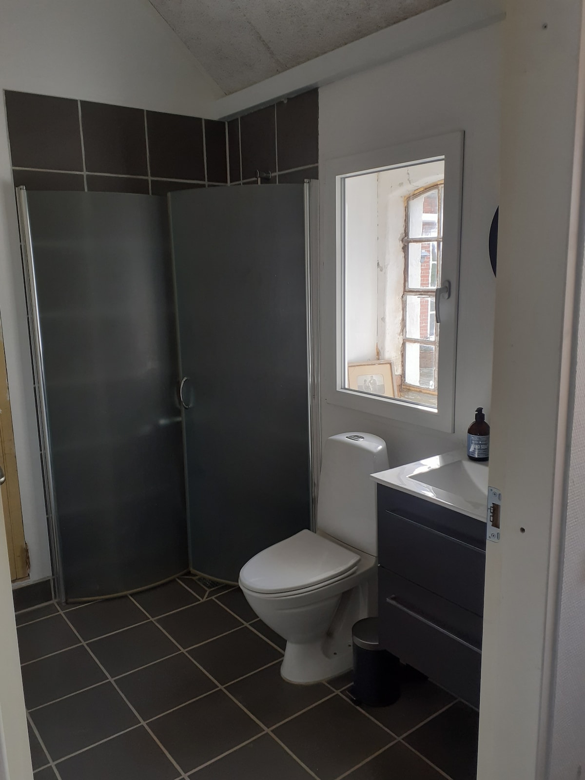 Studio confortable d'une chambre avec entrée privée. Chambre lumineuse et aérée de 30 m2 en carrelage avec poutres apparentes ainsi qu'un hall d'entrée spacieux avec armoire. Toilettes et salle de bain privées. Chauffage par le sol dans tout l'appartement. Kitchenette avec vaisselle, réfrigérateur (pas de congélateur), micro-ondes, friteuse et bouilloire électrique. Parking juste devant la porte. Petite table de jardin avec deux chaises entre des jardinières et le soleil de l'après-midi et du soir. La maison est située dans la rue principale de Sorø dans une zone de 40 km/h