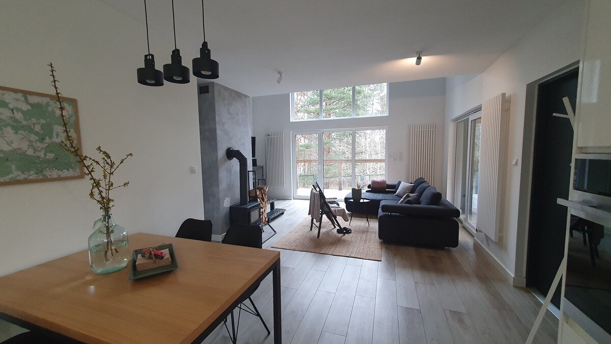 Bienvenue à Lake Space Podwilczyn, votre maison de vacances sur le lac Rybiec avec une jetée, une forêt privée et un sauna. Parfait pour les familles, les couples et les invités avec animaux de compagnie. 3 chambres, 2 salles de bains, salon avec cheminée et Netflix, jardin, terrasse, barbecue et vélos. Tous les coûts, linge de lit et serviettes inclus. Emplacement calme en pleine nature, à seulement 45 km des plages de la mer Baltique à Ustka. Découvrez la détente au bord de l'eau et dans la verdure !