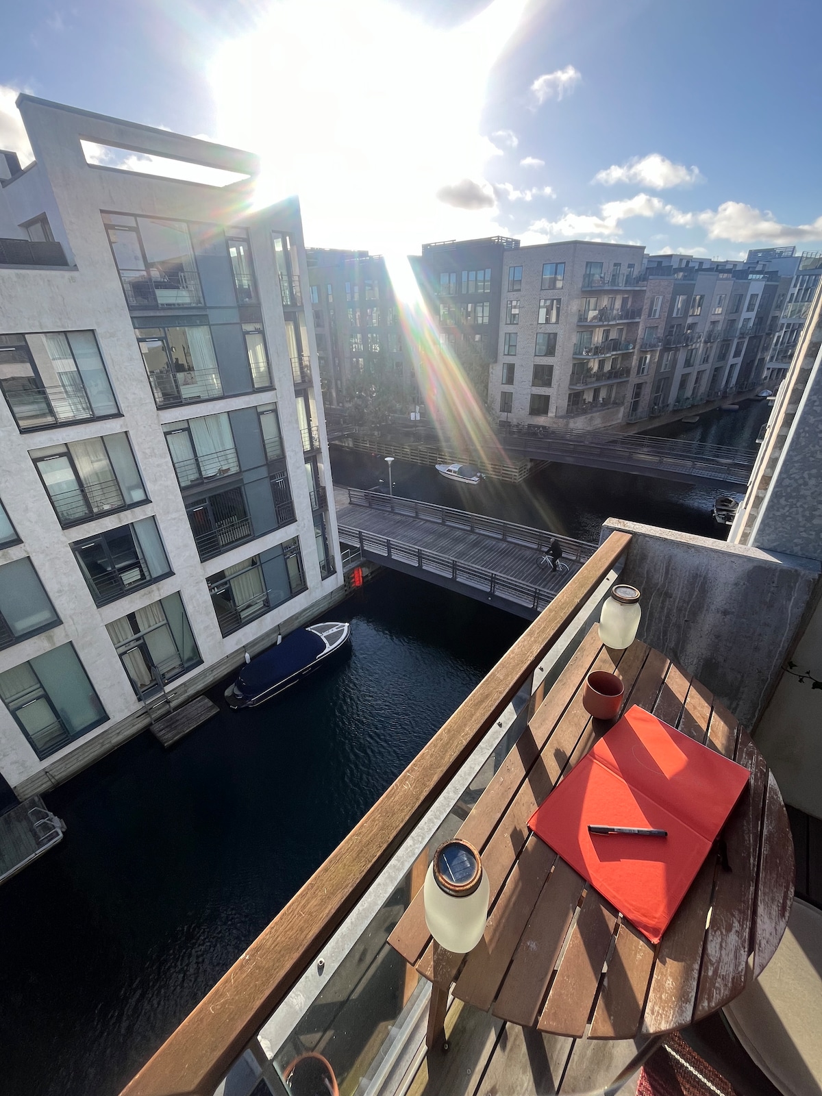 Découvrez l'Amsterdam de Copenhague dans cet appartement extraordinaire, situé au bord de l'eau, entouré par la nature et une ville vibrante. Profitez du coucher du soleil et du lever du soleil depuis l'appartement et ses 3 balcons et son toit privé. Allez vous baigner le matin au port. À 10-15 minutes du centre-ville. Cet appartement est idéal pour les couples adultes qui souhaitent profiter de tous les atouts de notre belle capitale tout en dormant loin du bruit d'une ville animée.
