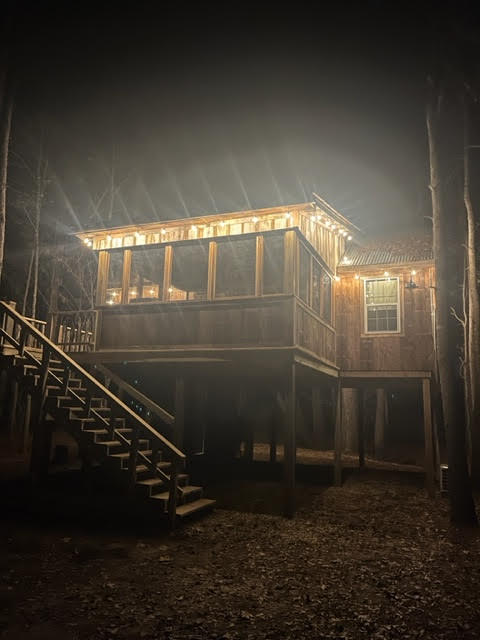Family-friendly 2 story farm cabin on 50-acres w/ 2 bedrooms, sleeping loft & 1 bath offers fishing, nature trails, and friendly farm animals. Enjoy evenings by the fire pit, pitch a tent, see stars, and experience farm life! Accommodates up to 5 guests. Three houses on the property ensure privacy and a community feel. Book now for a relaxing countryside retreat and unforgettable memories! Events must be pre-approved. Event fee $150 for up to 15 people on the property.
