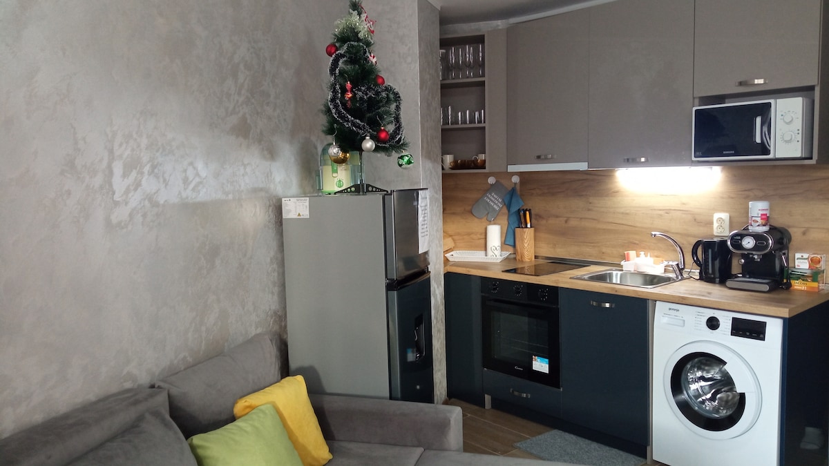 Profitez d'un petit appartement confortable dans un petit endroit calme et communicatif. À votre disposition, une chambre avec la possibilité de fournir un lit bébé, un salon spacieux avec un canapé-lit, une cuisine entièrement équipée et des téléviseurs dans chaque chambre. Un parking privé gratuit est à disposition des voyageurs.