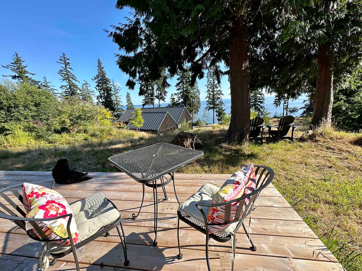 Welcome to our Hillside Oasis! Enjoy your own private spacious coach house with an unbelievable view. One bedroom, one bathroom, hotplate, toaster oven, fridge, pull-out couch, living room, cute little wood burning stove. 5 minute drive to the cove/ferry terminal. Relax on your private patio after a day of hiking, visiting the lakes or beaches, or shopping in the cove. Wifi TV w/Firestick. Queen bed. Note we are a 45 min walk uphill from the ferry. We recommend you bring a vehicle BL#00000770
