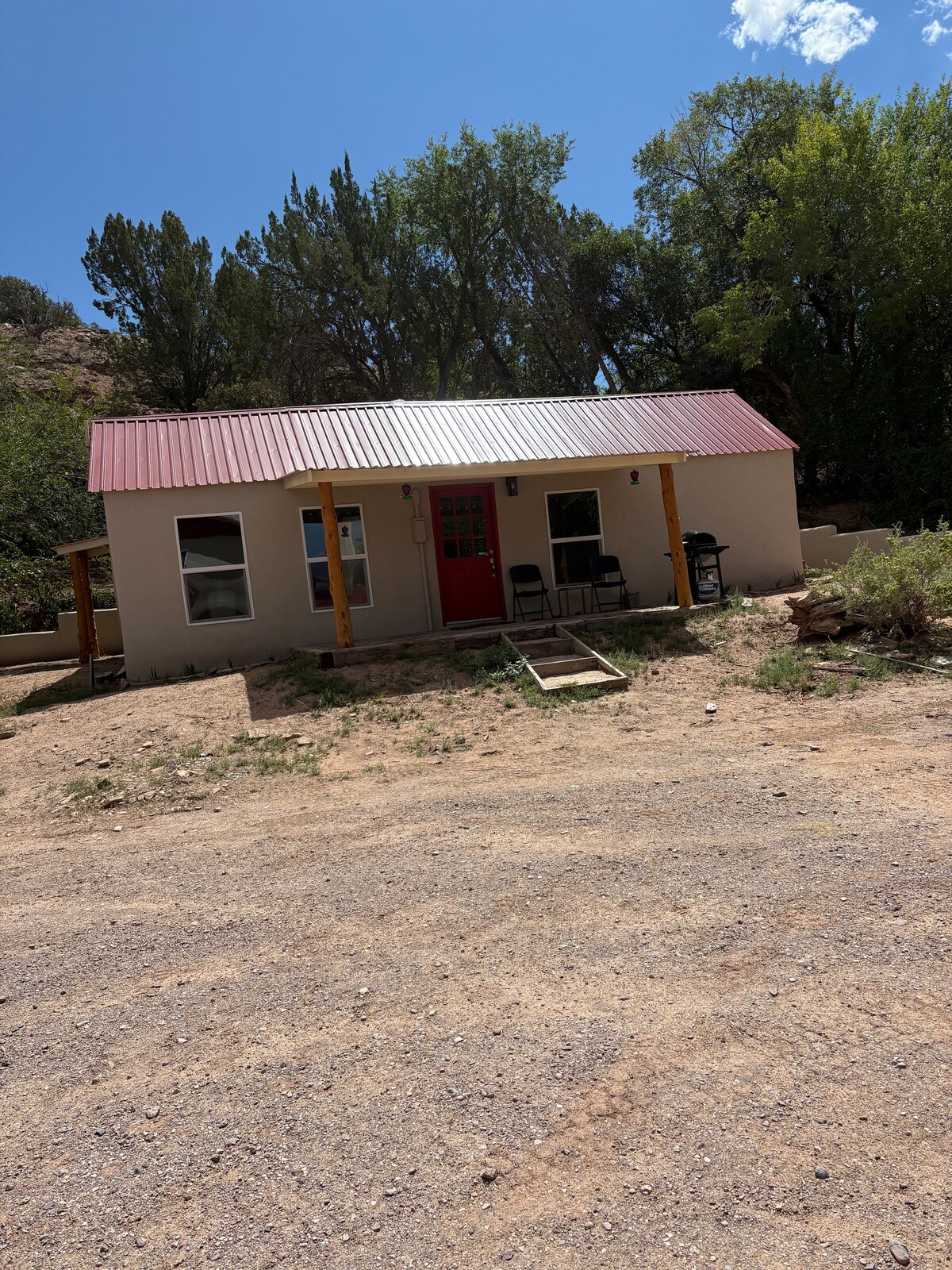 Allez-y doucement pour cette escapade unique et tranquille. Le chalet Thunderbird est situé dans les montagnes de Manzano. À seulement 70 miles au sud-est d'Albuquerque, le Nouveau-Mexique, les quatre côtés bordant la forêt nationale. Cette maison est hors réseau en utilisant l'énergie solaire pour allumer les appareils et les lumières de la maison. C'est l'endroit idéal pour venir se reposer, lire et peut-être faire une longue promenade dans les bois. Nous avons un petit étang derrière la maison où les cerfs et les dindes et beaucoup d'autres animaux sauvages comme ensemble.