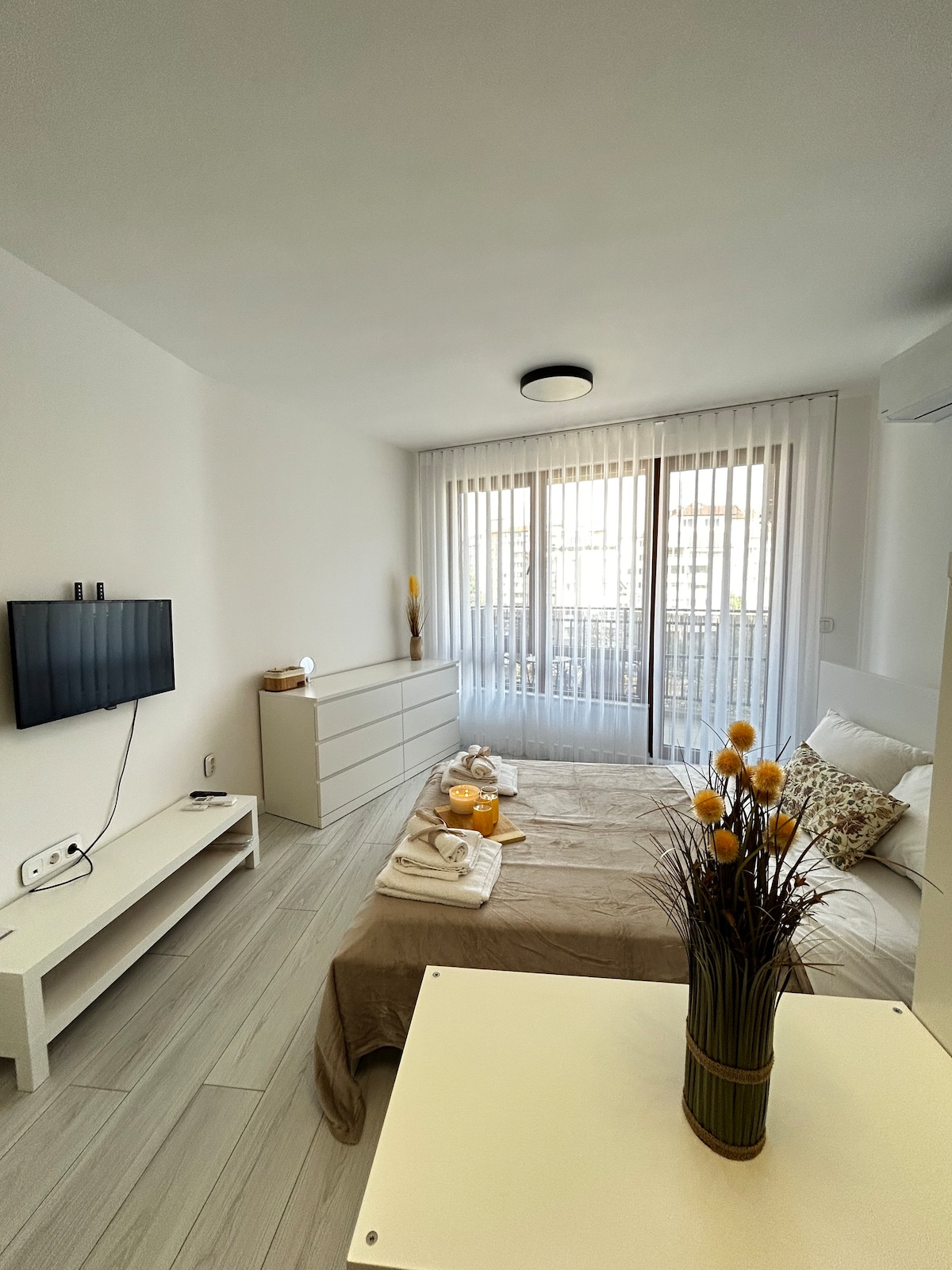 Welcome to my boutique attic studio at the foot of Vitosha. Bright, minimalist and peaceful space with beautiful mountain and city views. Located in a quiet, safe area—perfect for evening walks and relaxing away from the center. The bed features a Magniflex mattress and pillows for excellent rest. The studio has a fully equipped kitchen, fast Wi-Fi and a cozy work/dining area. Clean, calm and with easy access to both the mountain and the city.