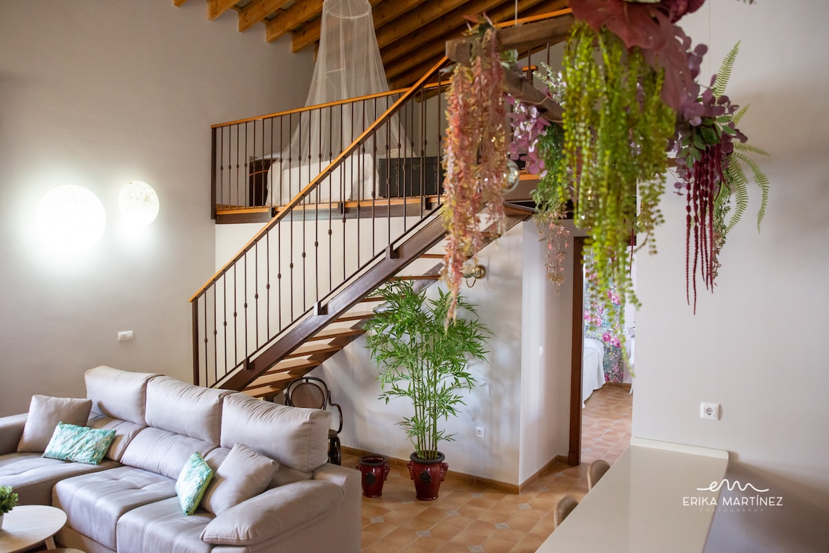 Appartement pour adultes et enfants de plus de 10 ans. Non-fumeur. Parking inclus dans le prix de la réservation. Le Loft est situé dans une cave de Jerez réhabilitée du XVIIIème. C'est un espace ouvert magnifiquement décoré et entièrement équipé. Il est situé au premier étage avec ascenseur et dispose d'une terrasse meublée de 20 m2 sous les arcades de la cour au rez-de-chaussée. C'est un endroit très calme pour se déconnecter et profiter de la paix et du silence dans un bâtiment historique.