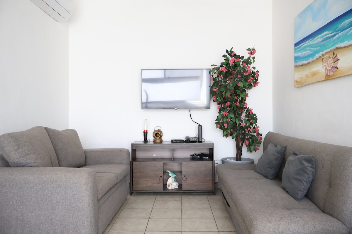 Studio paisible au 2e étage de Cozumel, situé à 3 pâtés de maisons de la jetée principale et du Malecon (avenue principale de l'océan), pour profiter et prendre en photo des couchers de soleil magiques, aller nager/courir le matin, faire du paddle, du vélo ou de la plongée avec tuba. Douche à effet pluie, eau chaude, café mélange mexicain, climatisation, lit Luuna, coffre-fort de sécurité. Wi-Fi par fibre optique +200 Mbps. Parking. Shampoing au miel maya bio + savon + après-shampoing. À proximité des restaurants, boutiques, bars, marché local, tacos et musée. Votre studio des Caraïbes mexicaines, sentez-vous comme chez vous. Bienvenue :)