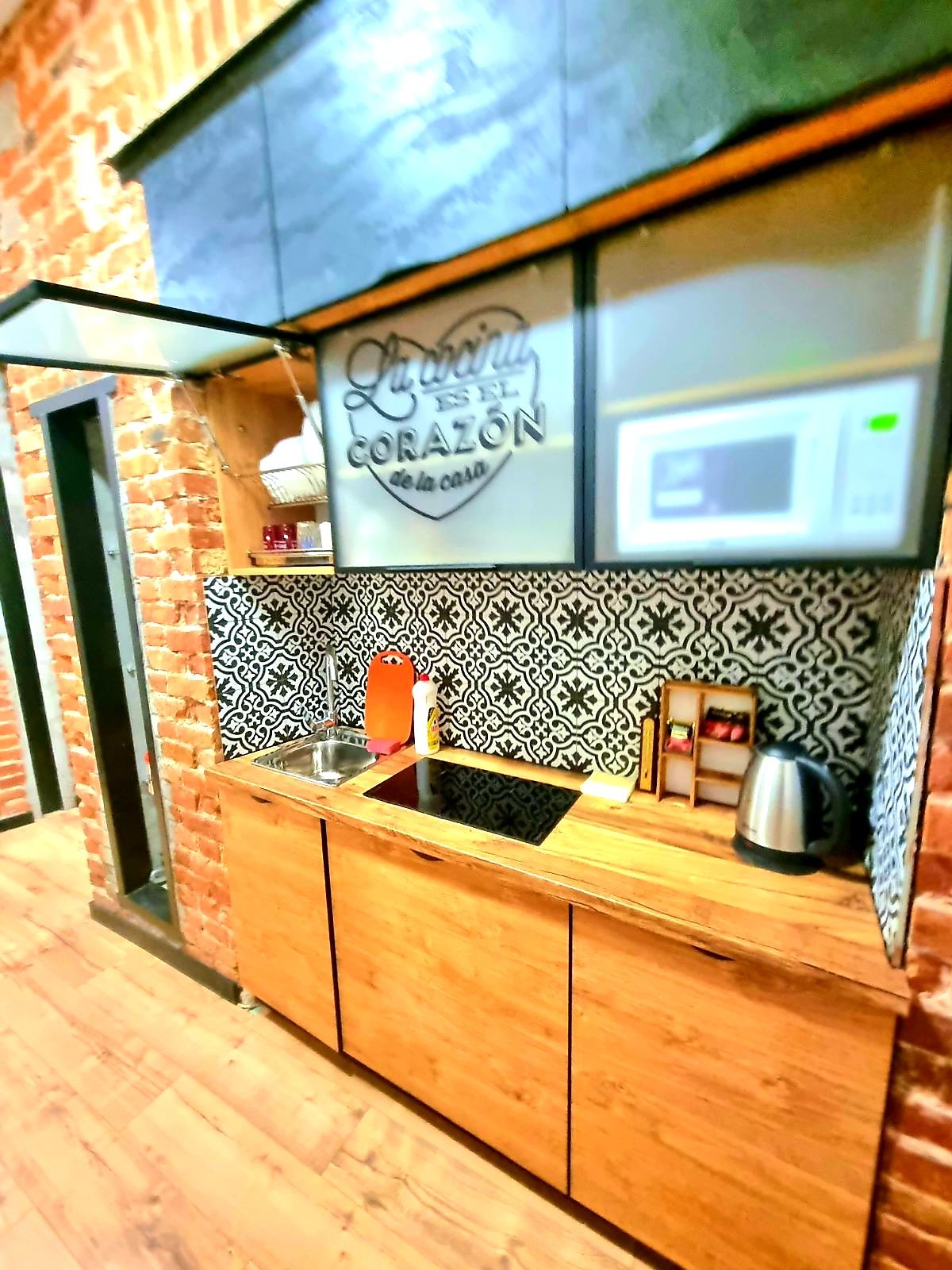 Le studio vert est situé au cœur de Dnipro L'appartement est au dernier 9e étage et la taille est d'environ 35 m2 La hauteur sous plafond est de plus de 3 mètres, c'est pourquoi l'appartement semble spacieux. Lit confortable et moelleux, cuisine entièrement équipée avec lave-linge et micro-ondes. Le tout nouveau modèle QLED de Télévision connectée Samsung. La salle de bain dispose d'une douche et de toilettes séparées.