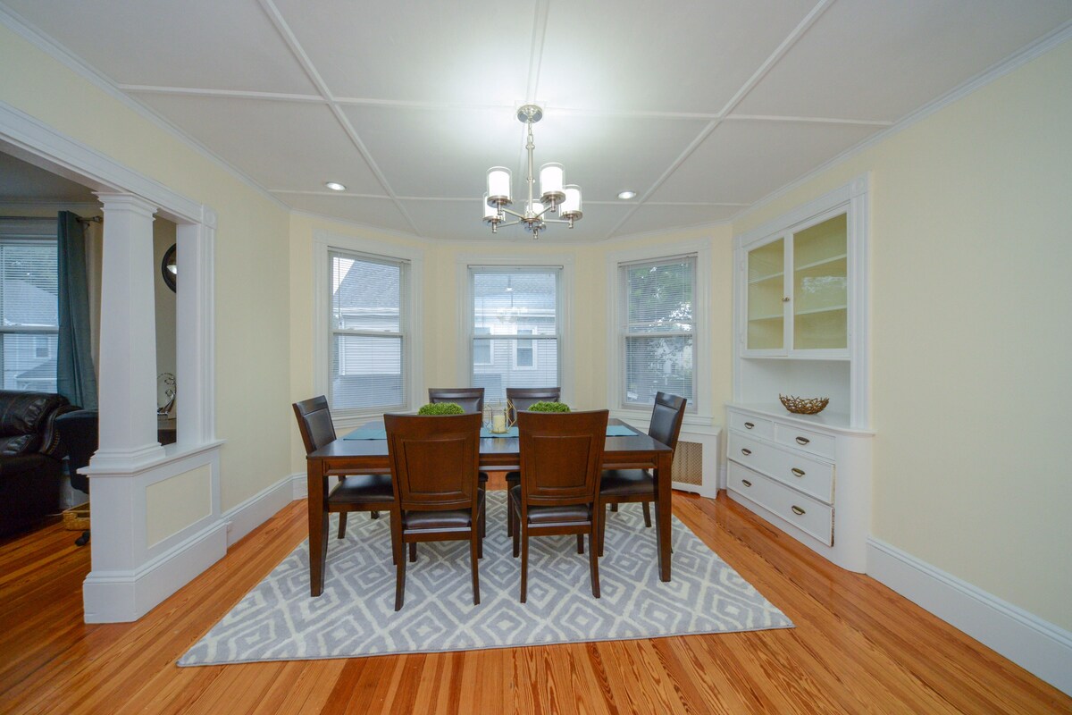 Découvrez le charme classique de Boston dans cette maison de plus de 100 ans magnifiquement entretenue, parfaitement située dans un quartier résidentiel calme. • Nettoyage professionnel après chaque séjour • Lits queen confortables dans toutes les chambres calmes • 3 minutes à pied de la ligne verte + 15 minutes en métro du centre-ville • 14 minutes de l'aéroport Logan de Boston • Café et thé gratuits • 2 places de parking sur place La base idéale pour votre voyage d'affaires ou vos vacances à Boston : caractère historique, confort moderne, commodité imbattable.