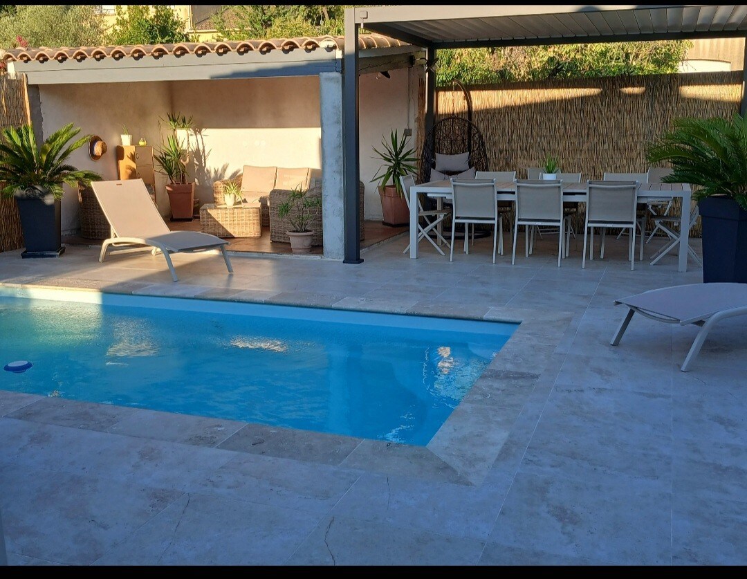 Maison de 42m² avec son jardin privatif de 100m² et 2 terrasses avec four a PIZZA. Une piscine privative de 10m² chauffée donnant sur la terrasse vous est réservée sur le terrain ( sans contrainte d'horaire pour l'utilisation) , un jardin méditerranéen est présent avec palmier, cocotier, citronnier, bananier et olivier. La maison comporte une cuisine américaine complète ( frigo, plaque à induction, fours , lave vaisselle, machine à cafés tassimo…) d’une table et 4 chaises.