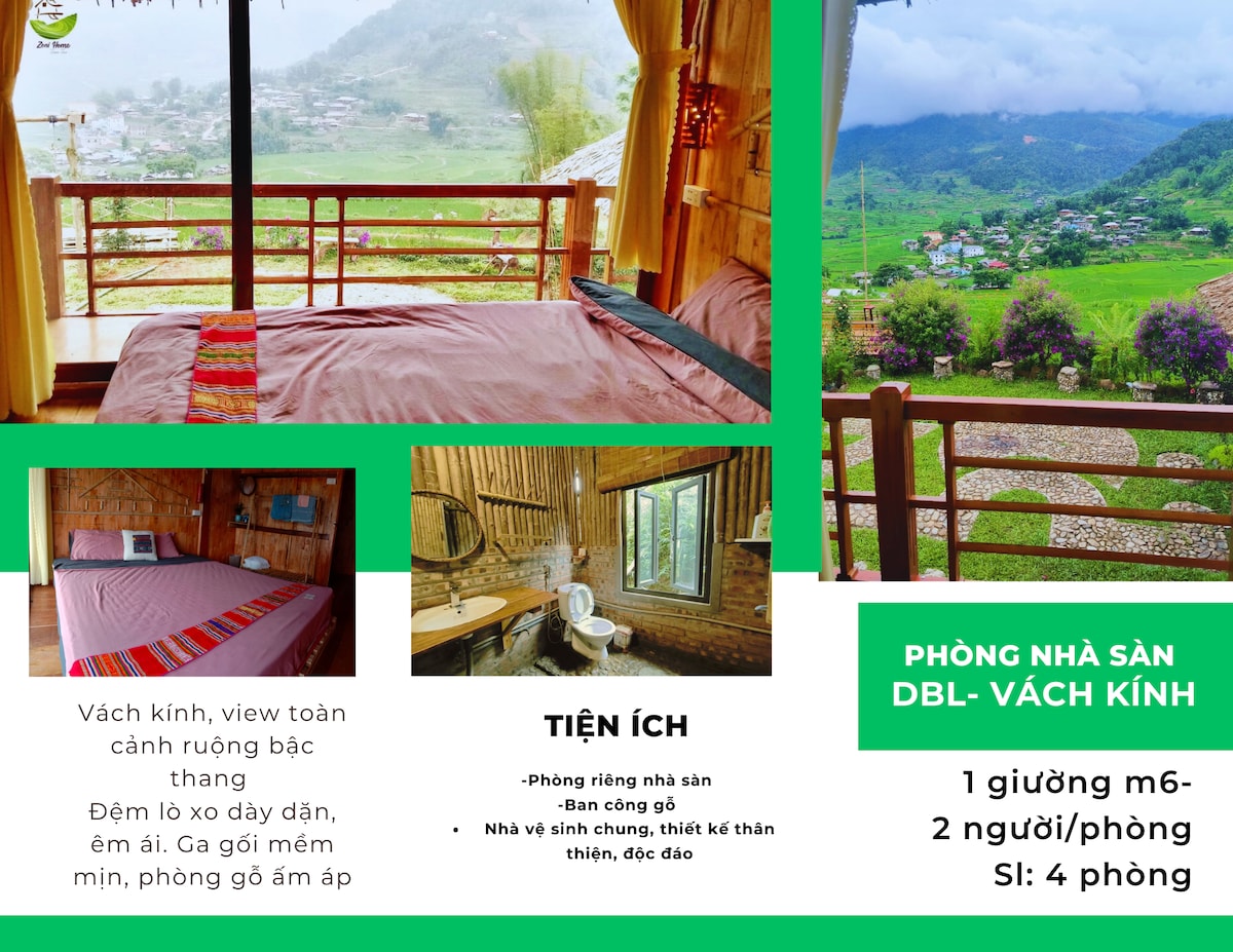 See Bungalow nằm trên một ngọn đồi nhỏ, view 360,ngắm trọn bình minh, hoàng hôn và thung lũng lúa mù cang chải, mang đến không gian yên tĩnh và gần gũi thiên nhiên. Bungalow được xây bằng gỗ, thiết kế ngôi nhà người hmong mộc mạc nhưng ấm cúng, có cửa sổ lớn nhìn thẳng ra thung lũng và ruộng bậc thang. Bên trong được trang bị đầy đủ tiện nghi cơ bản, có lò sưởi cho những ngày lạnh, cùng hiên rộng – nơi du khách có thể ngồi thư giãn, uống trà và tận hưởng toàn cảnh núi rừng.