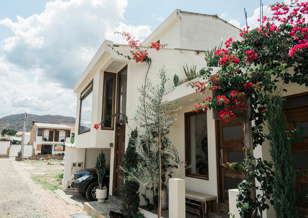 🏕️ Maison design au cœur de Villa de Leyva, Colombie Proche de tout, à 5 pâtés de maisons de la place centrale 🛌🏻 King beds 📶 Wi-Fi 👨💻 Coworking 🚘 Parking 🧹 Ménage (Inclus) 🥘 Service de préparation des aliments (COÛT SUPPLÉMENTAIRE) La place ✨ La maison offre une expérience unique, combinant un design architectural contemporain avec l'essence des maisons coloniales traditionnelles du village 🗺️ Son emplacement privilégié permet de profiter de toutes les commodités du village à pied