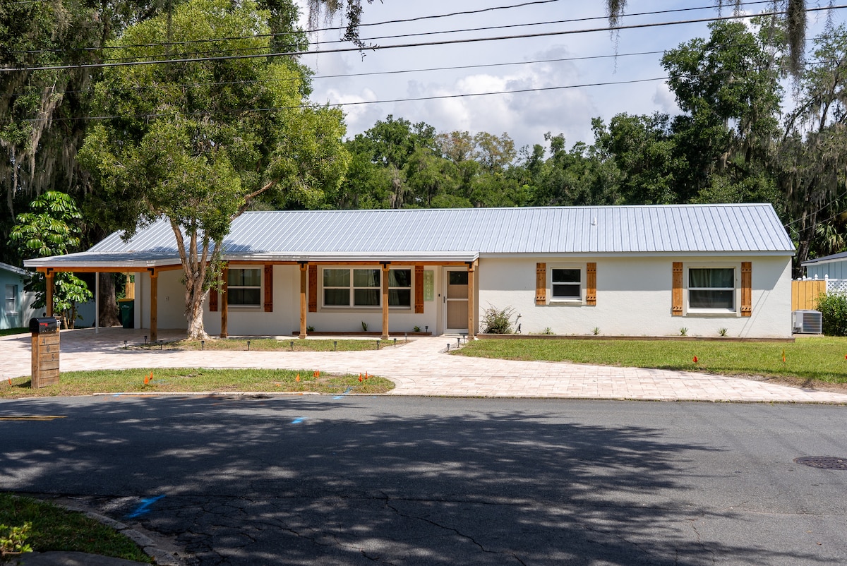 Profitez de ce chalet rénové, construit à l'origine en 1931, situé dans le quartier historique et à distance de marche du centre-ville de Mount Dora. Le chalet est équipé de lits Queen Size et King Size, d'une cuisine complète, d'un foyer, de téléviseurs intelligents, d'un patio extérieur, d'un porche fermé, d'un lave-linge/sèche-linge et d'une allée privée. Profitez des sites historiques et des maisons à proximité, des beaux lacs, de la promenade, du phare ainsi que de tous les commerces, restaurants et divertissements du centre-ville.