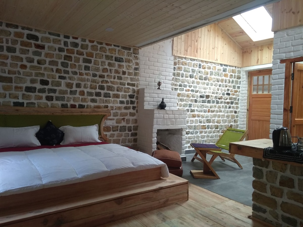 Ce que vous obtenez : Étage privé 3BHK | Balcon privé | Vue sur la montagne | Télévision LED intelligente | Lits King Size avec matelas de 12pouces | Toilettes attenantes | Bouilloire électrique | Espace de travail avec chaise | Salon/salon confortable Petit déjeuner : 200 roupies par personne/jour Il y a un chef interne et un menu La Carte pour déguster de délicieux plats. Nos chambres offrent de belles vues panoramiques sur la vallée , des montagnes enneigées, des cascades de source, des vergers de pommes et de beaux sentiers à proximité pour une promenade dans la nature.
