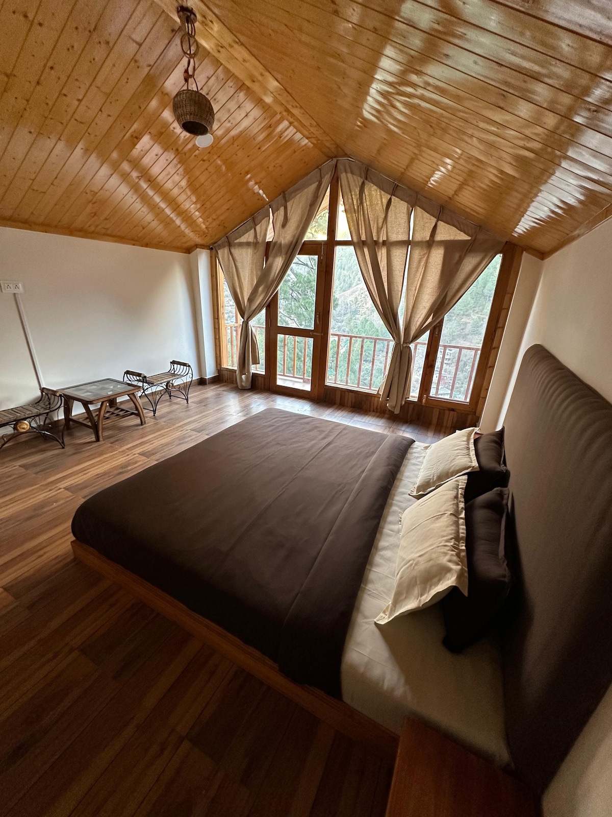 Mandukya is a luxury retreat in Tandi village, nestled in the majestic mountains 8km uphill from Jibhi . Our secluded cottages offer breathtaking views, high-end furnishings, and insulated walls for temperature control. Enjoy bath tubs facing the mountains and sauna baths for deep relaxation. In-house chef and automated food ordering system available for authentic Indian and international cuisine. Experience the ultimate mountain get away at Mandukya where luxury and nature meet.
