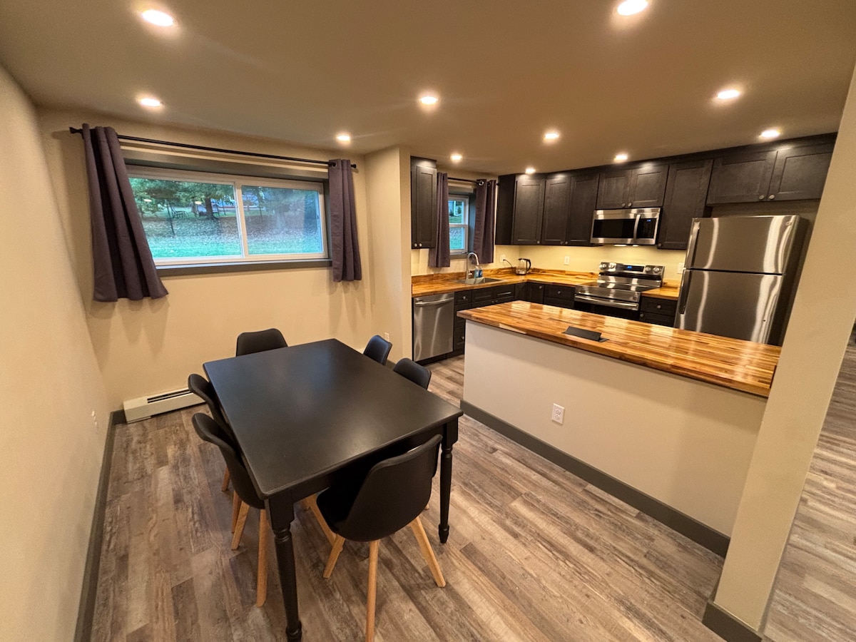 Profitez de cette belle maison d'hôtes verte à quelques minutes de Cornell U, (5 min) et du centre-ville d'Ithaca (10 min). CNN a classé Ithaca comme la ville numéro 1 à visiter. À quelques minutes en voiture de la station de ski Greek Peak, ce chalet d'une chambre récemment construit dispose d'une entrée séparée, d'une terrasse, de sols en bambou vert, du chauffage électrique solaire et de la climatisation. Il est entouré de 22 acres de belles forêts et de pelouses vallonnées. À l'intérieur, profitez du plan d'étage ouvert, y compris une cuisine avec comptoir en quartz/verre recyclé et une salle de bain carrelée en céramique avec douche à effet pluie.