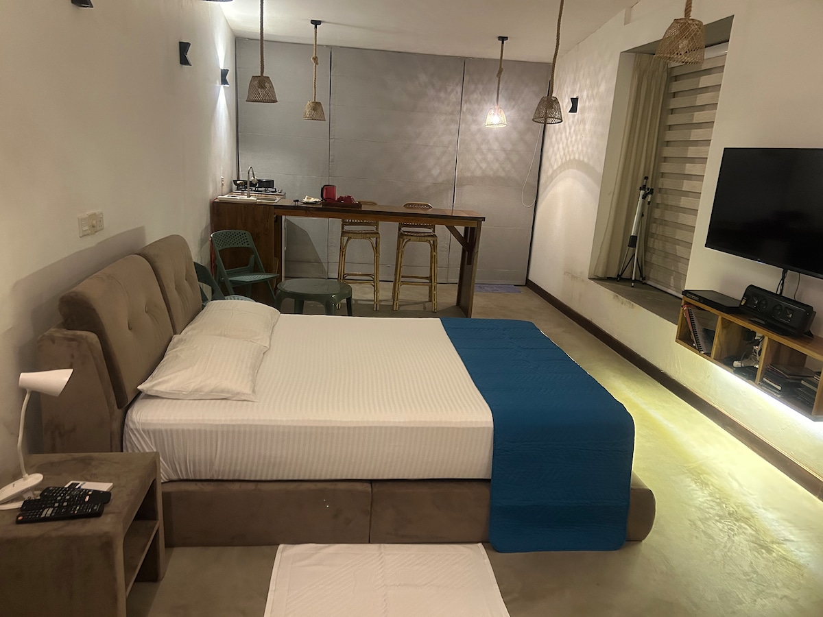 Ce superbe loft est situé en plein cœur de Calangute. Proche de tout, il est parfaitement situé pour planifier vos vacances à Goa. Il s'agit d'un grand espace aéré, avec une ambiance artistique et un confort extrême. Nous fournissons tous les équipements de base pour rendre vos vacances super confortables. Équipements : climatisation, réfrigérateur, TV, WIFI, CUISINE, CUISINIÈRE À GAZ, BOUILLOIRE ET MICRO-ONDES. Nous avons une place pour le stationnement. Accès facile au Loft depuis la route.