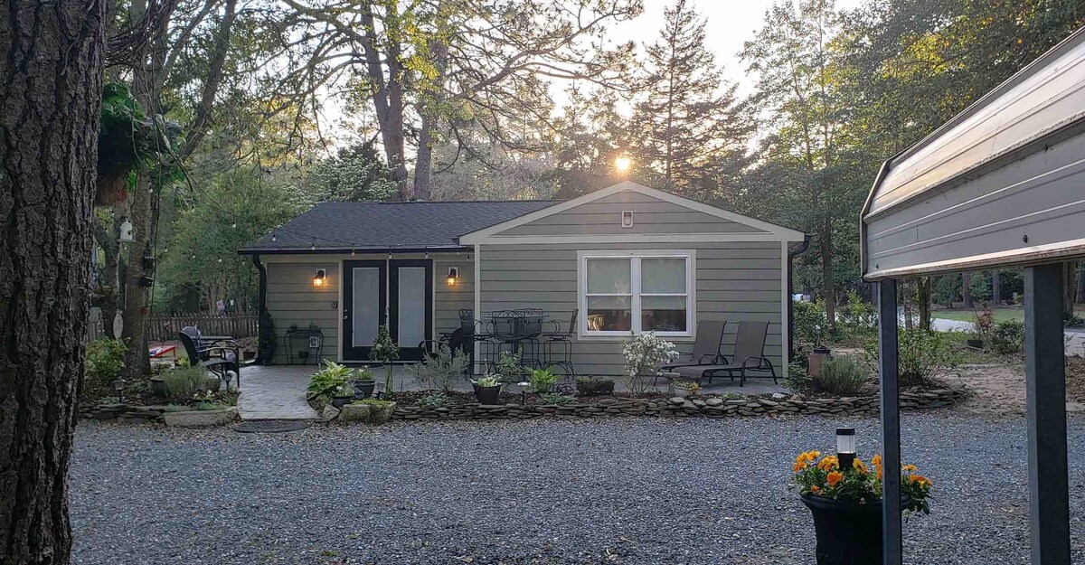 Détendez-vous dans notre chalet récemment rénové, à quelques pas du centre-ville de Southern Pines ! Passez la journée à admirer la beauté des sentiers locaux et des jardins horticoles de Sandhill, ou explorez les boutiques pittoresques « SoPi » et le théâtre Sunrise. À seulement dix minutes en voiture de Pinehurst, la région possède certains des meilleurs terrains de golf du pays et une fabuleuse scène gastronomique. Le chalet dispose d'un nouveau matelas taille Queen Nectar, d'une connexion Wi-Fi rapide, d'une douche surdimensionnée, d'une cuisine moderne et d'une cour privée avec foyer.