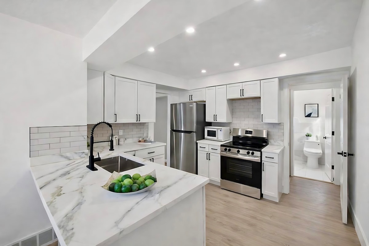 Asseyez-vous et détendez-vous dans cet espace confortable et élégant à proximité immédiate du centre-ville - Royal Oak, Birmingham, Clawson et Troy. Situé dans un quartier sûr et vert, vous êtes à moins de 10 minutes de certains des grands restaurants, bars, brasseries et activités amusantes de la région métropolitaine de Detroit. Idéal pour les personnes à la recherche d'un séjour de courte durée entièrement meublé avec un caractère moderne et un design épuré.